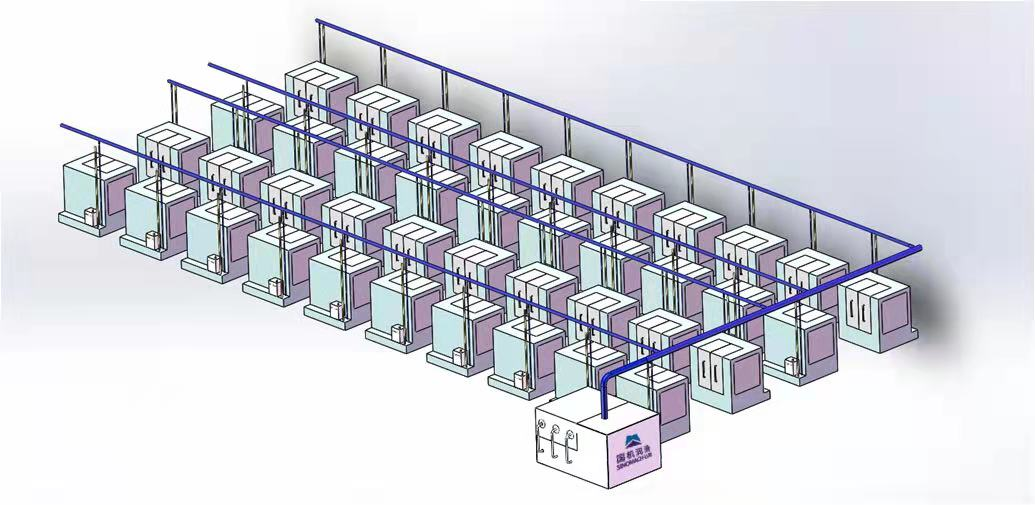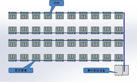 2、管道供液,由主管道及支流管道組成,可分配到每臺(tái)機(jī)床水箱。
